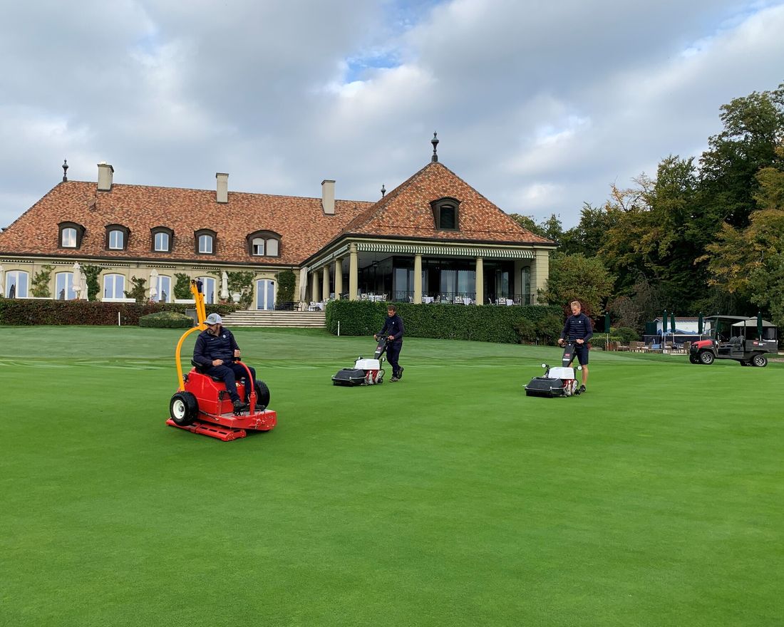 Dans le golf, la durabilité se reflète également au niveau des machines utilisées quotidiennement pour l’entretien du terrain. Au Golf Club de Genève, la majeure partie du parc de machines a été convertie à l’électrique et à l’hybride.